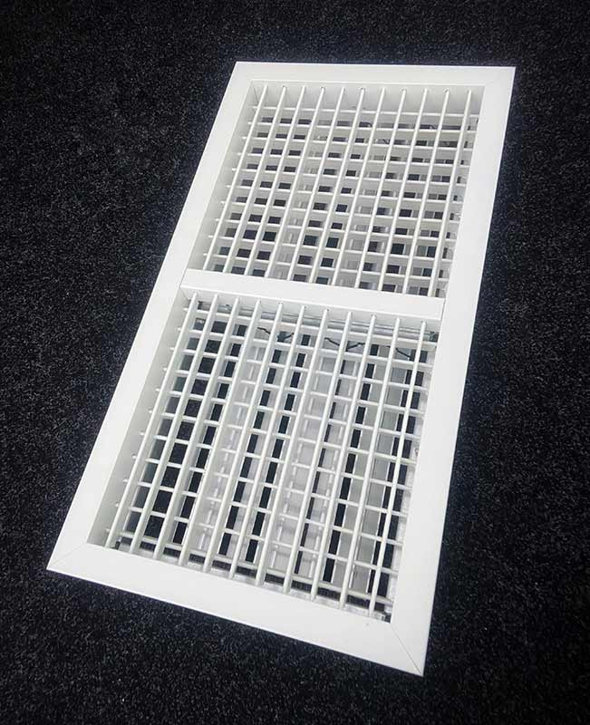Решетка имеет рамку и два ряда каплеобразных жалюзи – лицевой ряд жалюзи установлен горизонтально, тыльный ряд – вертикально. Угол наклона жалюзи устанавливается индивидуально и регулируются независимо друг от друга для изменения направления воздуха.