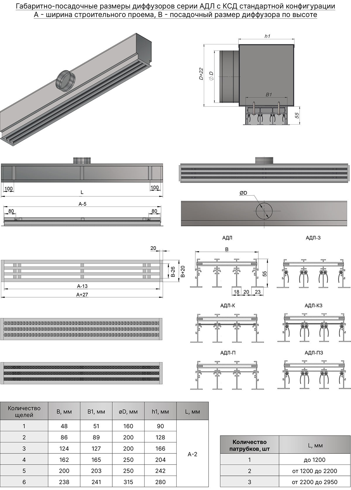 Щелевой диффузор АДЛ-П применяется в системе приточно-вытяжной вентиляции. Конструктивно состоит из видимой рамки и выравнивателя потока воздуха. По дополнительному запросу возможна комплектация направляющими потока воздуха. Могут быть самостоятельным изделием в виде одиночной секции или ее составной частью. Возможное количество щелей от 1 до 10.