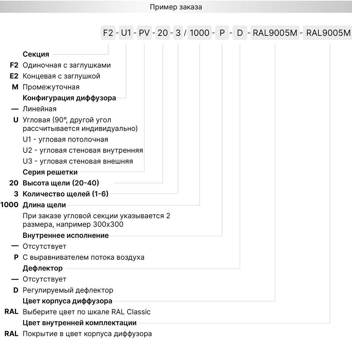 Конфигурация диффузора. По требованию заказчика возможно изготовить диффузоры радиусной формы или угловые для модульной сборки непрерывной линии по всему периметру. При установке системы вентиляции в радиусные стены, ниши, арочные своды требуются диффузоры и адаптеры аналогичной изогнутой формы заданного радиуса.